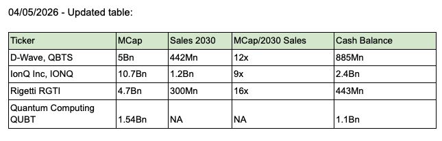 IONQ, the largest, is showing some cash and sales strength. IONQ and QUBT have doubled their cash balances, respectively.
