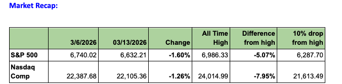 Both the S&P 500 and the Nasdaq Composite lost over 1% during the week. The S&P 500 lost 1.6% and closed 5% lower than its all time high, and the Nasdaq Composite 1.26% but is now almost 8% off its all time high of 24,015, well on its way to correction territory.